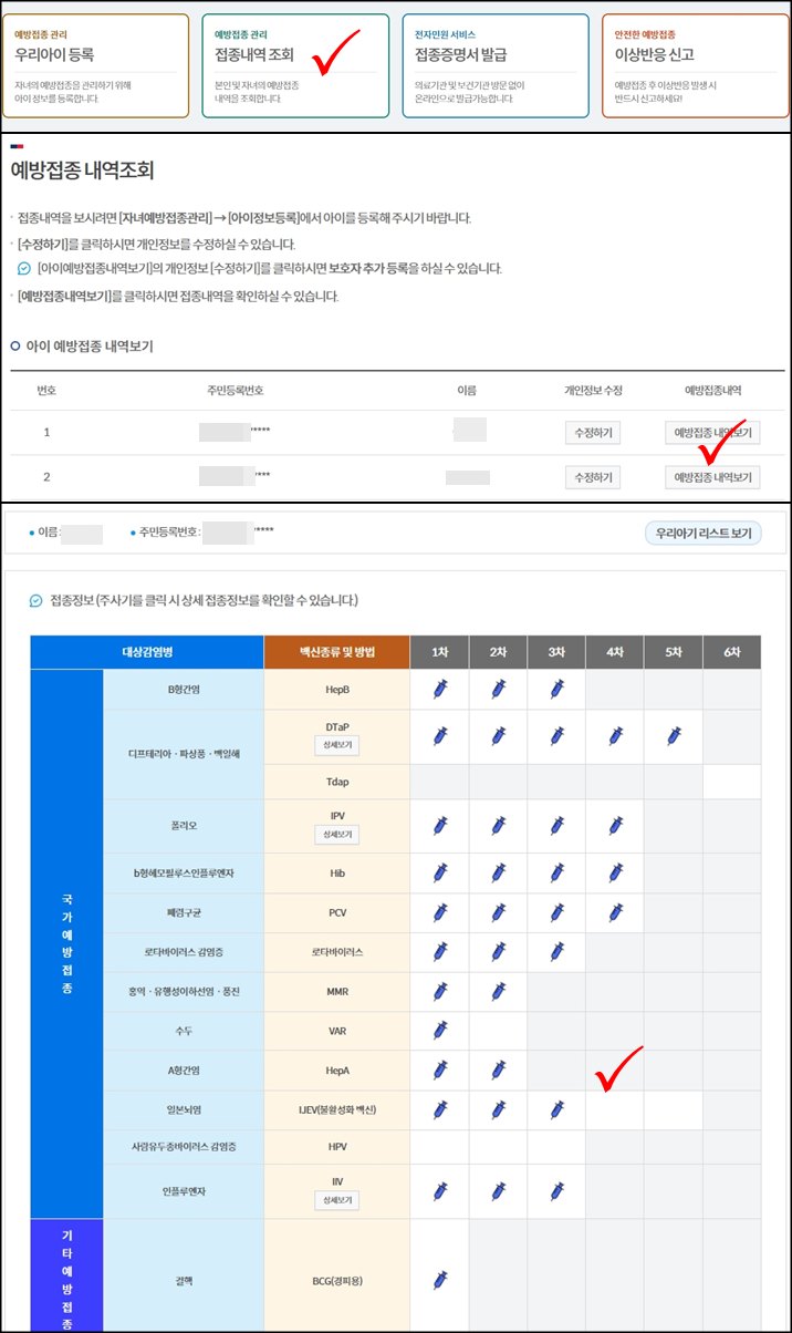 - 아이 예방접종 내역조회에서 찾고 싶은 아이누르기