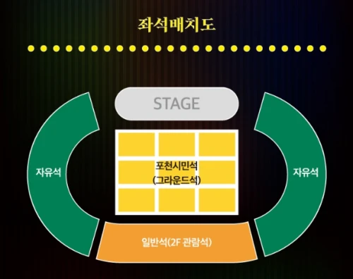 - 자유석 : 운동장 측면 관람석 / 1,000석