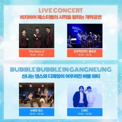 | 07.01(토) | 버블 에어볼 이벤트 강릉 버스킹 홀릭 라이브 공연 버블 디제잉 파티 |